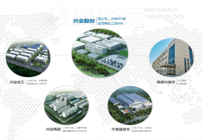苏州兴业材料科技股份有限公司伴随装备制造业20余年,已发展成为具有铸造功能材料、特种酚醛树脂和球化剂等三大产业,占地286亩的高新技术企业和主板上市公司。